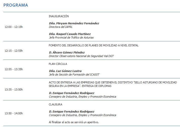 El 23 de septiembre de 2022 el Instituto Asturiano de Prevención de Riesgos Laborales organiza una jornada para el Acto de entrega de las diplomas del Sello de Movilidad Segura en la Empresa que ya cuenta con la quinta edición.